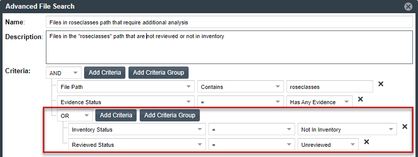 - To add a group of criteria that serves as a criterion, click Add Criteria Group, and repeat steps a through c to create the group.