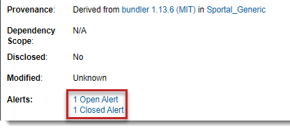• To view open or closed alerts, open the Inventory Details tab in the right pane. If alerts exist, the Alerts field on the tab shows separate links to view open or closed alerts, as appropriate.