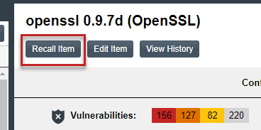 - Open the Project Inventory tab for the desired project, and select the inventory item that you want to recall (see Displaying Project Inventory). Information about the inventory item is displayed in the right pane.